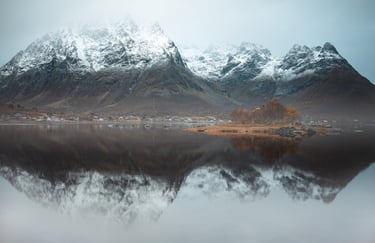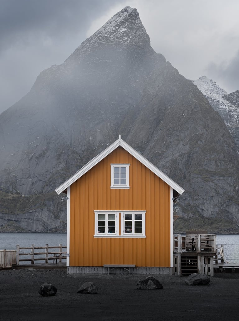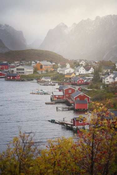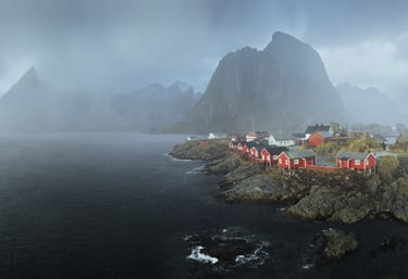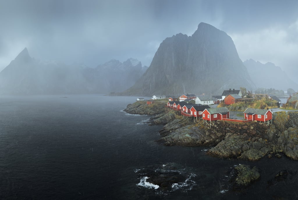 Kiedy mgły i niskie chmury osiadają na rybackich wioskach, nadają im tajemniczy, nieco mroczny i filmowy klimat. Domki Rorbu, skąpane w delikatnej mgle, wyglądają jak z obrazka, a ich kolory wydają się jeszcze bardziej intensywne, kiedy chmury odcinają je od szarości otaczającego krajobrazu.