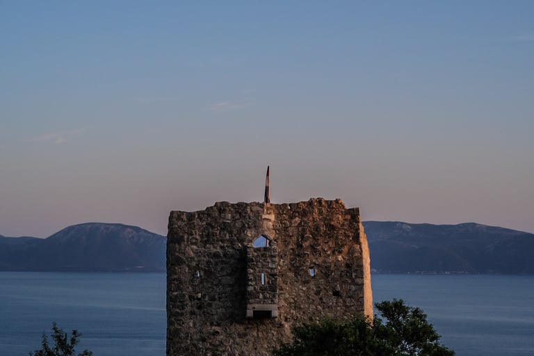 W okolicy znalazło się też inne miejsce na dłuższy spacer. Razem z Nacho wybraliśmy się zobaczyć zabytkową fortecę. Takich historycznych zabytków jest w Chorwacji bardzo dużo. Spacer był przyjemny, jednak zawiedli nas mieszkańcy miasteczka. Pomimo ogólnej gościnności Chorwatów, tym razem miejscowi nie byli zbyt przyjaźni, szczególnie wobec psa. Z nieznanych mi powodów ludzie bali się Nacho, choć to bardzo przyjacielski i niegroźny pies, który zawsze spaceruje na smyczy. Dzieci kilkukrotnie próbowały obrzucać go kamieniami, a dorośli schodzili mu z drogi z przerażeniem w oczach. Taka atmosfera nie sprzyjała dłuższemu postojowi. Czułyśmy się nieswojo i wkrótce ruszyłyśmy w dalszą drogę.