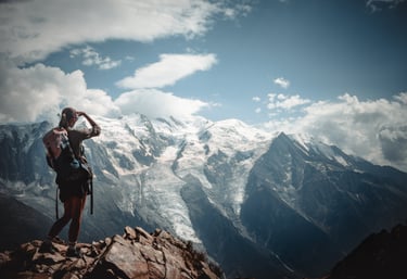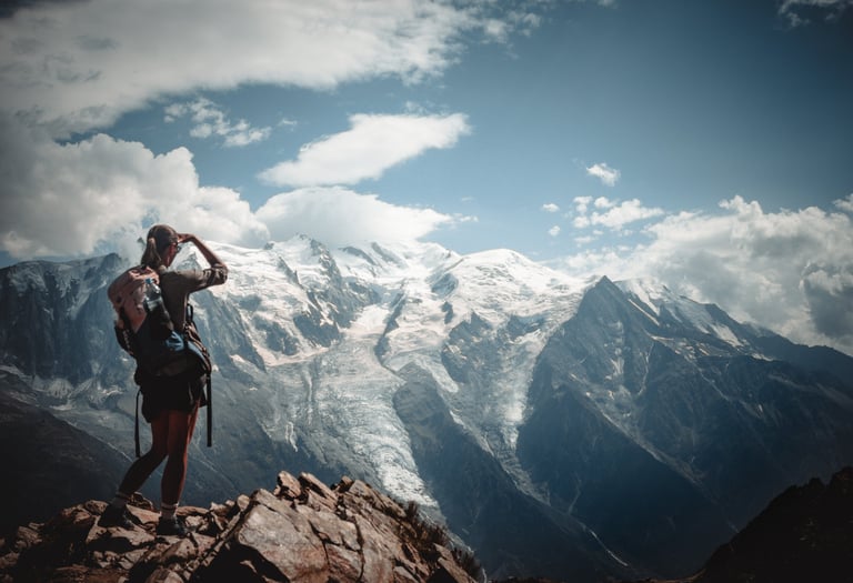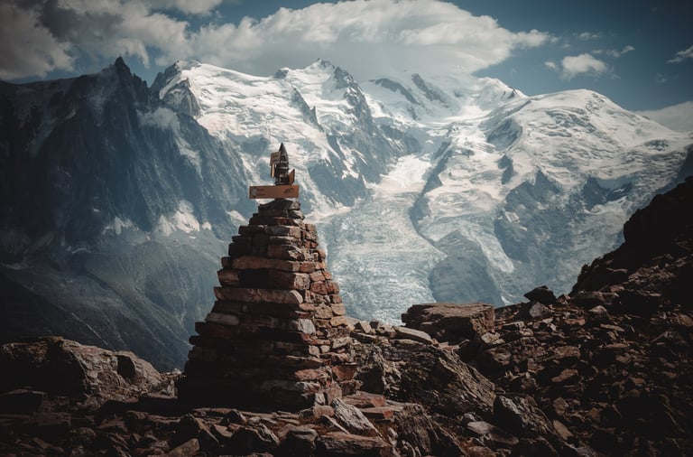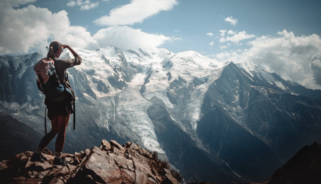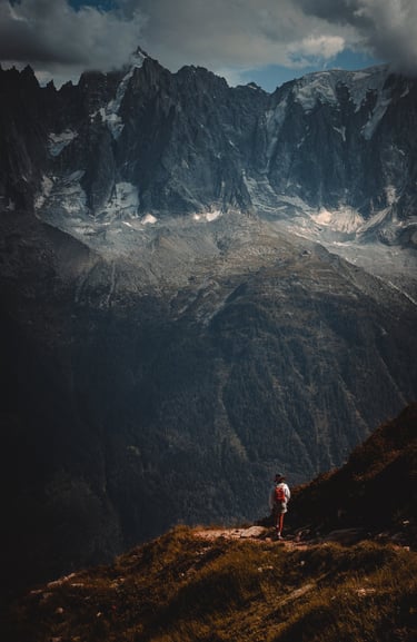 Masyw Mont Blanc, nazywany też Dachem Europy, leży na terenie Francji, jednak tuż przy granicy ze Szwajcarią. Jego najwyższy szczyt wznosi się na wysokość ponad 4805 metrów n.p.m, a u podnóża gór znajduje się znany chyba na całym świecie kurort narciarski - miejscowość Chamonix. Cała dolina Vallée de Chamonix jest miejscem tak kultowym, że odwiedza je rocznie ponad 4 miliony turystów. Z moim "zamiłowaniem" do takich atrakcji byłam pełna obaw, zarówno o ceny, swobodę poruszania się przez samą dolinę, jak i ilość turystów na szlakach, jednak mimo faktycznie ogromnej ilości ludzi - zakochałam się po uszy w tej francuskiej, alpejskiej krainie. Pamiętam doskonale ten moment zachwytu, gdy wyjechaliśmy na drogę prowadzącą ponad doliną, po raz pierwszy widząc masyw Mont Blanc górujący nad miastem. Musiałam zatrzymać samochód i chwycić za aparat. Potęga gór była naprawdę przytłaczająca, a to pewnie dlatego, że różnica ich wysokości względem doliny przekracza 3500 metrów.