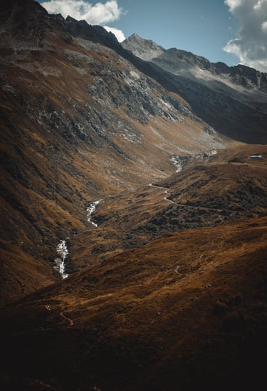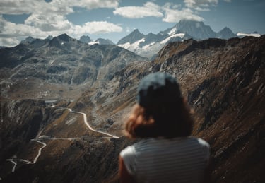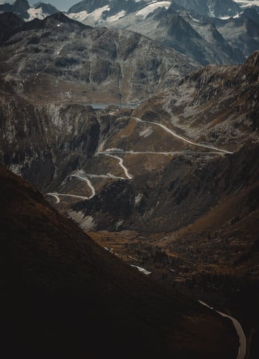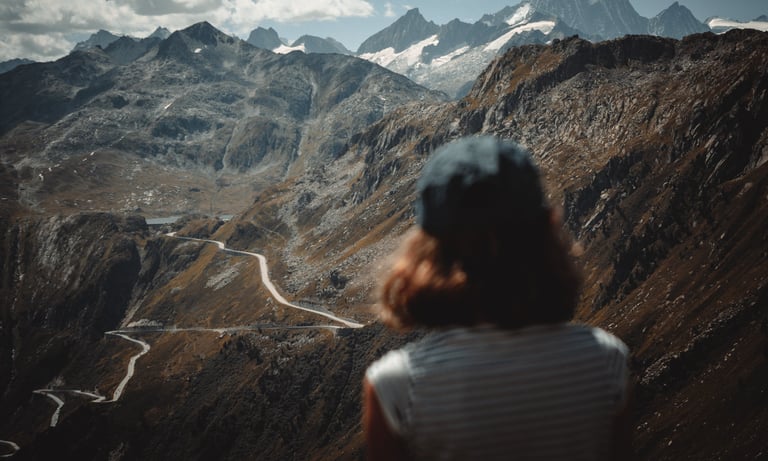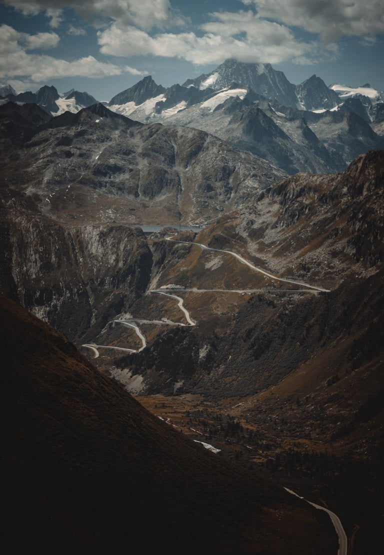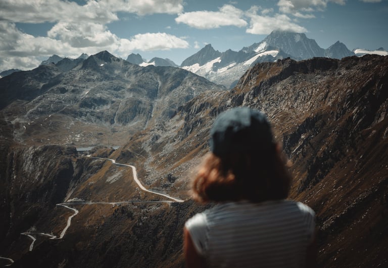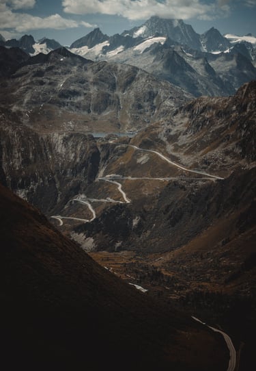 Na biegu tej wyjątkowej drogi znajdują się trzy miejsca, przy których szczególnie chciałam się zatrzymać. Pierwszym z nich jest Furkapass, czyli jedna z najwyżej położonych, alpejskich przełęczy, znajdująca się na wysokości 2436m n.p.m., oddzielająca dwa szwajcarskie kantony - Valais i Uri. Po dziesiątkach zakrętów i setkach zachwytów dotarliśmy na jej grzbiet. Naszym oczom ukazał się całkiem nowy, ciągnący się aż po horyzont, bajkowy krajobraz szwajcarskich Alp skrywających coraz to wyższe szczyty pod śniegiem. Szybko znalazłam jeden z punktów fotograficznych stojących na trasie Grand Tour of Switzerland, oznaczający miejsce z zapierającym dech w piersi widokiem. Muszę przyznać, że to miejsce naprawdę było jednym z najpiękniejszych, do jakich mogłam dotychczas dojechać samochodem.