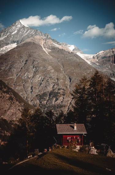 W ten sposób dotarłyśmy na niepozorny i niezbyt znany punkt widokowy ponad miastem Täsch, z którego doskonale widać Matterhorn w pełnej okazałości. Tego ranka niebo było przejrzyste, tylko jedna chmurka niczym kłębek waty oplatała szczyt, który ani razu nie pokazał nam się w całości. Był to piękny i ciekawy widok, wprowadzający malutki niedosyt, tym samym zapraszając nas do powrotu.