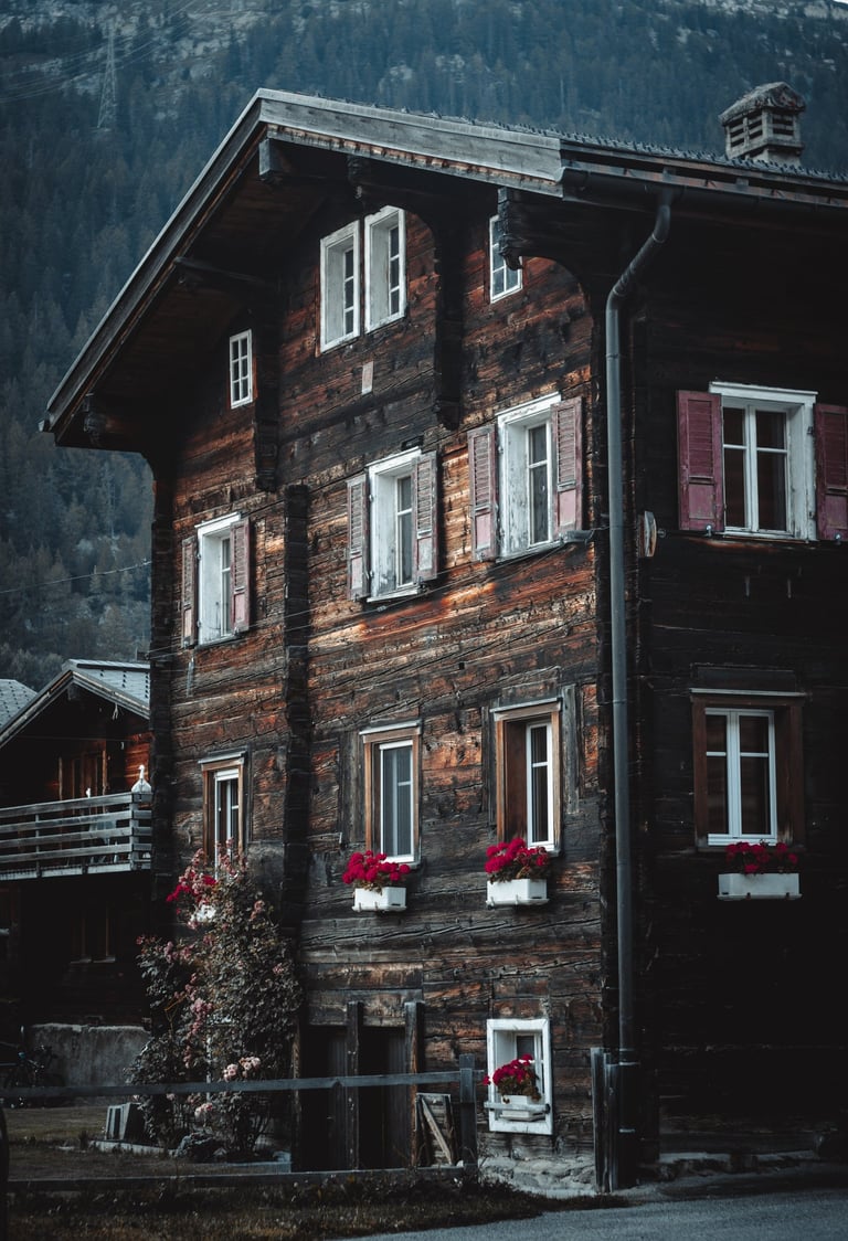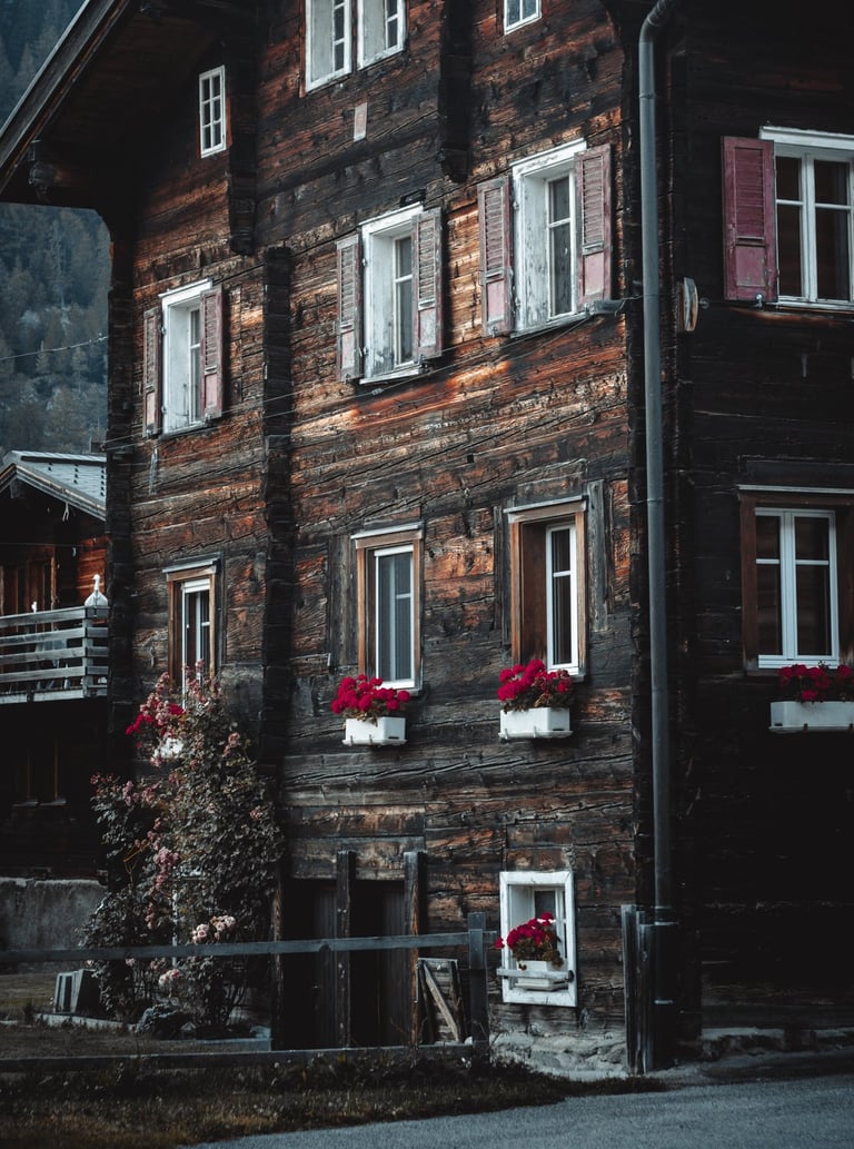 Kemping leży w pobliżu niewielkiej miejscowości Oberwald, która nie ma nic specjalnego do zaoferowania, ale spacer jej uliczkami to lekcja tradycyjnej, szwajcarskiej architektury. Drewniane domy, czerwone okiennice zdobione kwiatami, a z każdej z nich widok na wysokie góry. Kiedy ja zachwycałam się niemal każdą chatą i wyciągałam aparat za każdym zakrętem, dzieci biegły przed siebie, skacząc i robiąc gwiazdy na środku ulicy. Zdecydowanie nie był to dla nich najatrakcyjniejszy moment tego wyjazdu, dla mnie jednak wart wspomnienia, bo miło jest odetchnąć od Warszawy i innych wielkich miast, ich wysokiej, bezpłciowej zabudowy, ciasnoty i gwaru. Nie lubię miast. Mogłabym zestarzeć się w takiej małej, bajkowej, drewnianej, górskiej chatce.