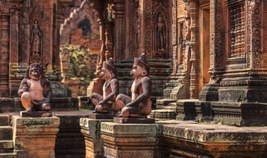 Drugi dzień w Angkor prowadzi nas mniej popularnym szlakiem. Rozpoczyna się zwiedzaniem nieco oddalonej od kompleksu Banteay Srei (“Cytadela Kobiet”). Pokryta misternej roboty ornamentami, czerwona, piaskowa świątynia to prawdziwa “cytadela piękna”. Kolejnymi atrakcjami są East Mebon (“Świątynia Słonia”) i Pre Rup oraz inne, ciągnące się aż do północnej bramy Angkor Wat, zabytkowe budowle. Popołudniu odwiedzimy szkołę rękodzielniczą Artisan Workshop w Siem Reap, gdzie zapoznamy się z popularnym w Kambodży rzemiosłem.