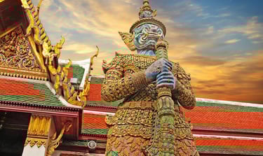 Zwiedzanie miasta warto zacząć od jednego z najważniejszych punktów na turystycznej mapie Bangkoku, czyli Wielkiego Pałacu Królewskiego. Leżący nad brzegiem rzeki, ogromny kompleks świątyń i ogrodów jest wspaniałym miejscem na spacer. Świątynia Wat Pho, skrywa olbrzymi, liczący niemal 50 metrów długości, posąg leżącego Buddy. Ostatnim punktem na trasie jest świątynia Wat Traimit, która zachwyci rozmachem i ważącym tyle, co słoń, złotym posągiem Buddy. Dla najlepszego doświadczenia tutejszego gwarnego życia, miasto zwiedzimy w prawdziwie tajskim stylu, czyli tuk tukami.