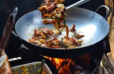 Możliwość zjedzenia świeżych owoców morza, przyrządzanych na naszych oczach przez lokalnych kucharzy w Kep