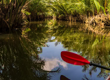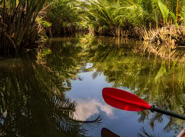Kampot jest niedużym, cichym, pełnym uroku kambodżańskiej prowincji miasteczkiem, leżącym na południowym zachodzie kraju. Jest tu trochę kolonialnej architektury oraz względnie niewielu turystów, co pozwala odpocząć od miejskiego gwaru stolicy i oddać się obserwacjom zwyczajnego, khmerskiego życia, toczącego się wokół hodowli, upraw i plantacji. To właśnie z Kampot pochodzi ponoć najlepszy pieprz na świecie! Wycieczka po plantacji pieprzu “La Plantation” z anglojęzycznym przewodnikiem to świetna okazja do zapoznania się z khmerską kuchnią i spróbowania lokalnych przysmaków takich jak suszone mango z czerwonym pieprzem czy słynna kawa z pieprzem. Po całodziennych degustacjach chwila na relaks w zaciszu kanału Green Cathedral. To przepiękny i zaciszny szlak, którego spokojne wody wiodą pomiędzy gąszczem palm i namorzyn. Warto poświęcić tu godzinę na rejs kajakiem.