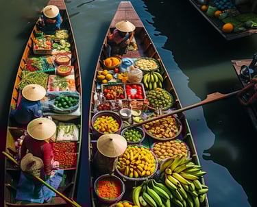 Objadanie się egzotycznymi owocami na autentycznym pływającym markecie